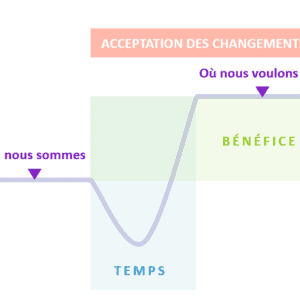 Normalement, la courbe remonte après un temps de remise en question qui, s’il est bien accompagné, sera le moins long possible, et elle dépasse son seuil initial. Non seulement le changement est accepté et digéré, mais on constate un bénéfice : on a changé pour le mieux.